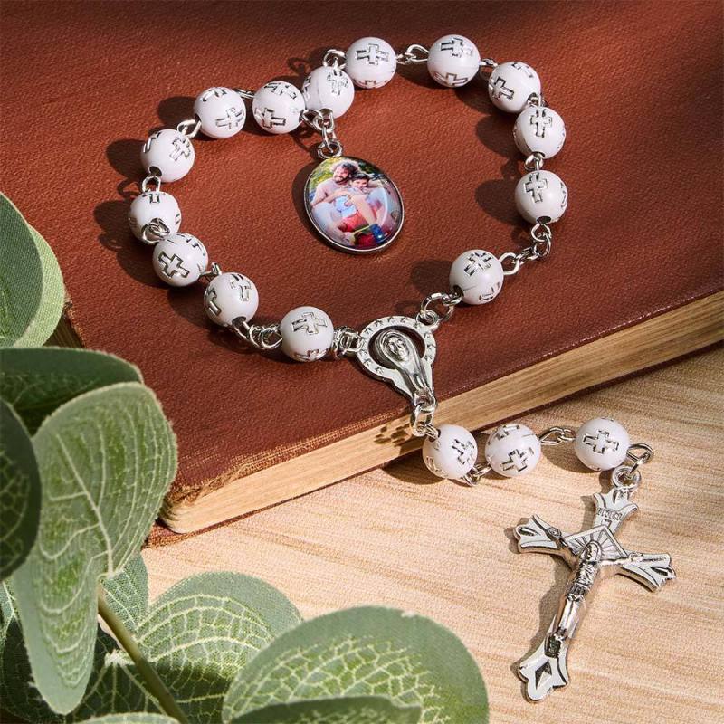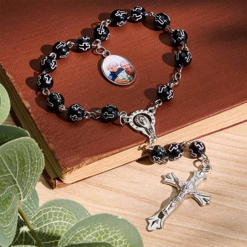 Personalized Photo Rosary Beads Cross Bracelet Custom Memorial Gifts Prayer Sentimental Gifts