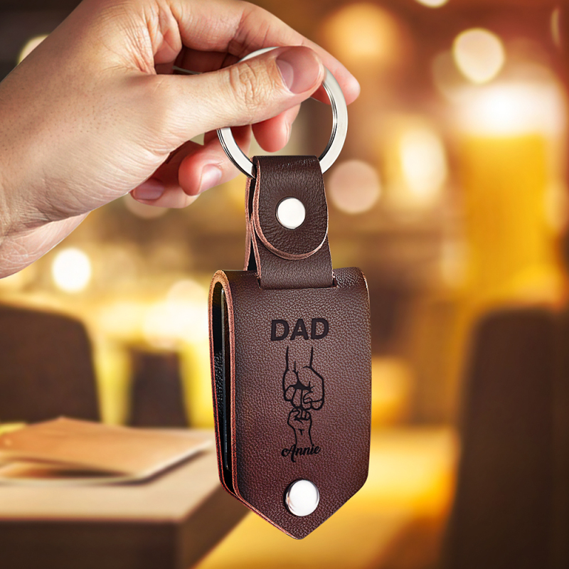 Personalized Picture Keychain for Dad, Fist Bump Custom Kids Name Keyring,Mens Leather Keychain, Anniversary Gifts for Him, Fathers Day Gift