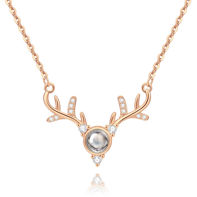 Personalized Projection Photo Antlers Necklace - Rose Gold