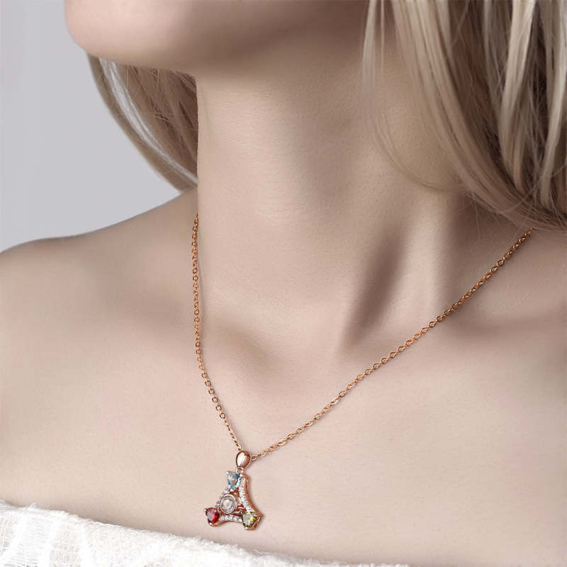 Personalized Projection Sector Three Colors Crystal Photo Necklace - Rose Gold