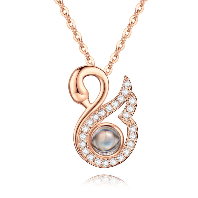 Personalized Projection Swan Crystal Photo Necklace - Rose Gold