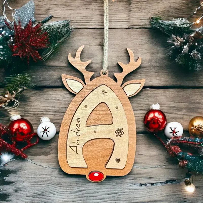 Personalized Reindeer Letter Ornament Custom Name Christmas Initial Ornament Retro Wood Reindeer Decor