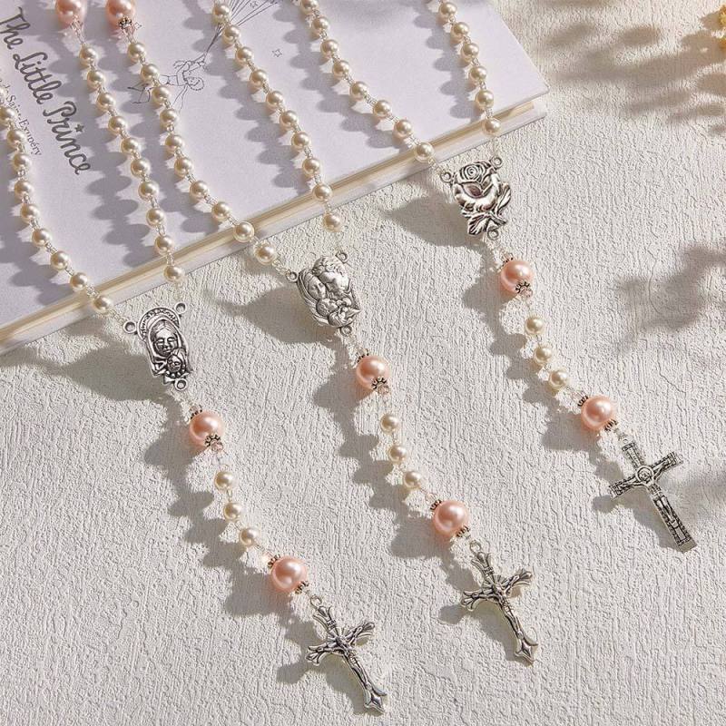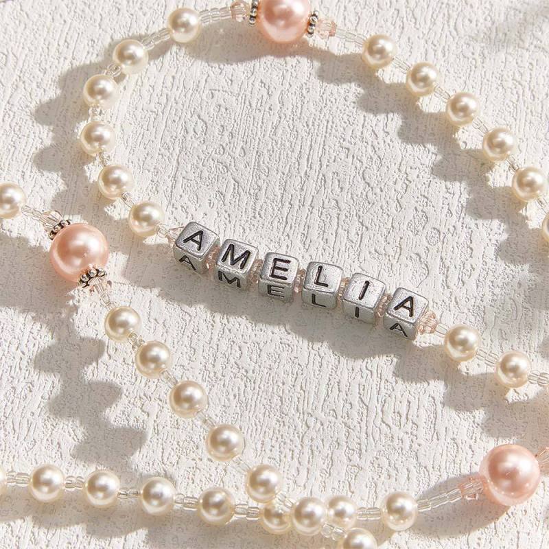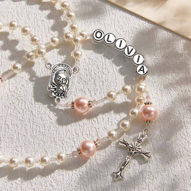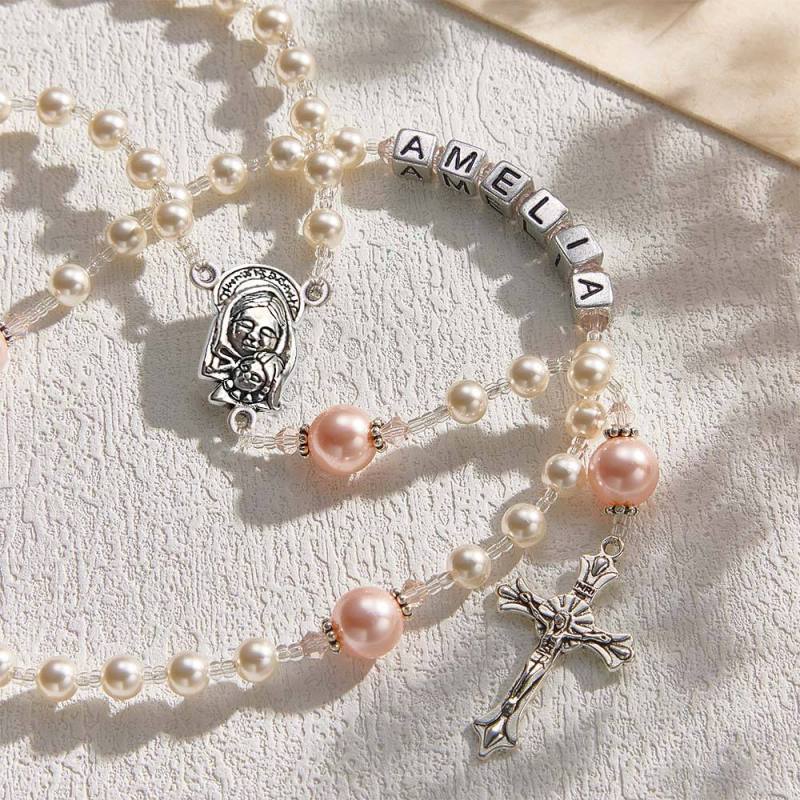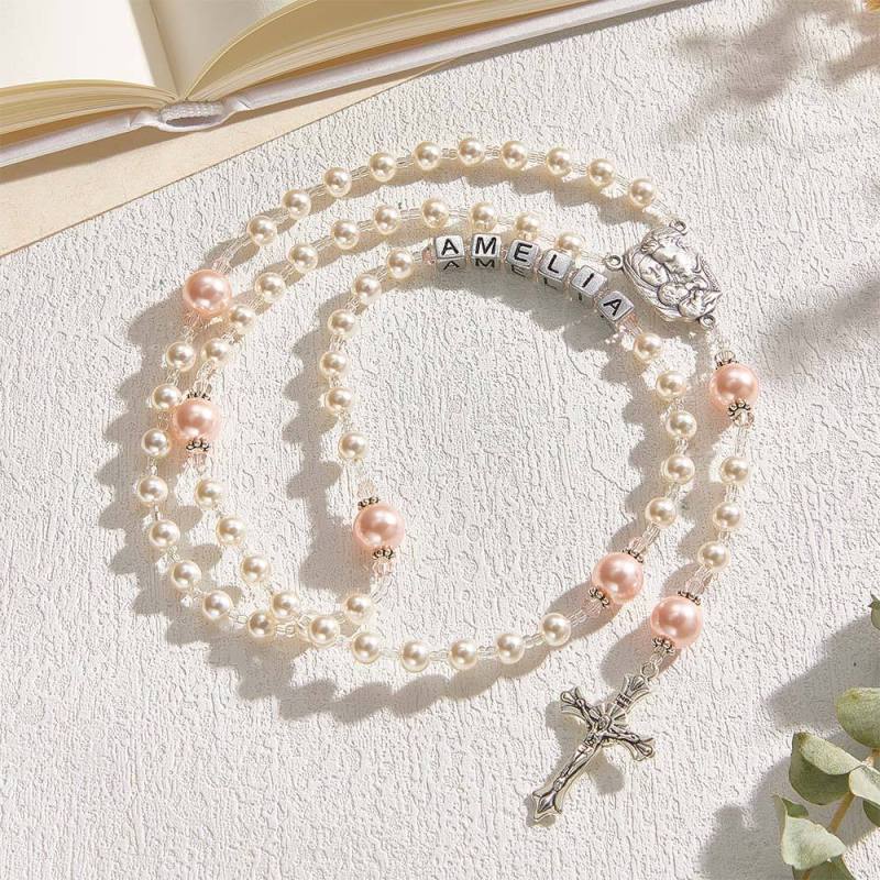 Personalized Rosary Beads in White and Pink - Baptism Gift, First Communion Gift, Confirmation, Baby or Little Girl Keepsake, Mother Rosary