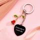 Personalized Rose Pendant Heart Keychain Elegant Flower Key Ring for Her