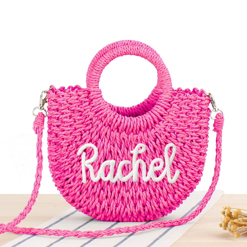Personalized Straw Beach Bag Custom Summer Name Beach Braided Straw Tote Handwoven Beach Bag Summer Beach Accessory