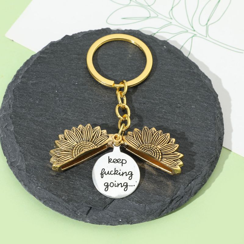 Personalized Sunflower Locket Keychain Custom Engraved Inside Neckalce Keep Going Sunflower Jewelry