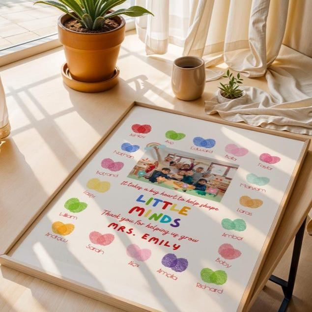 Personalized Teacher Appreciation Gift Custom Teacher Thank You Print Class Photo & Student Names "Helping Us Grow" Art