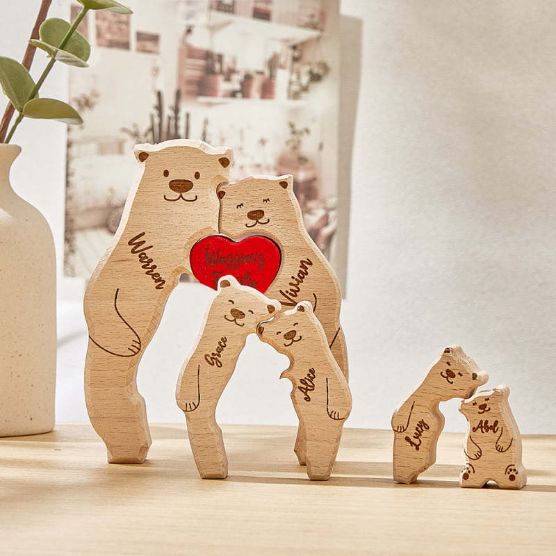 Personalized Wooden Bears Custom Family Member Names Puzzle Home Decor Gifts