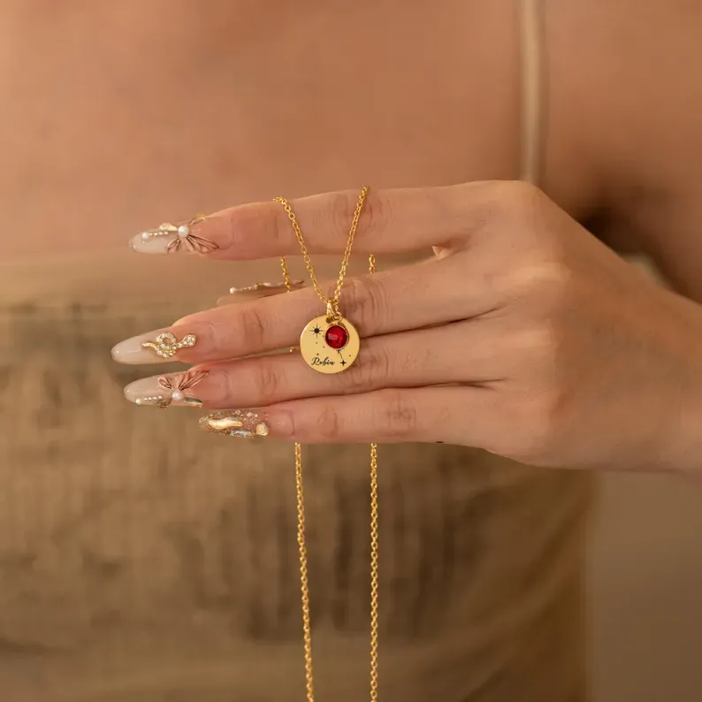 Personalized Zodiac Necklace with Birthstone, Dainty Constellation Jewelry, Custom Astrology Gift for Her, Minimalist Gold Finish Necklace