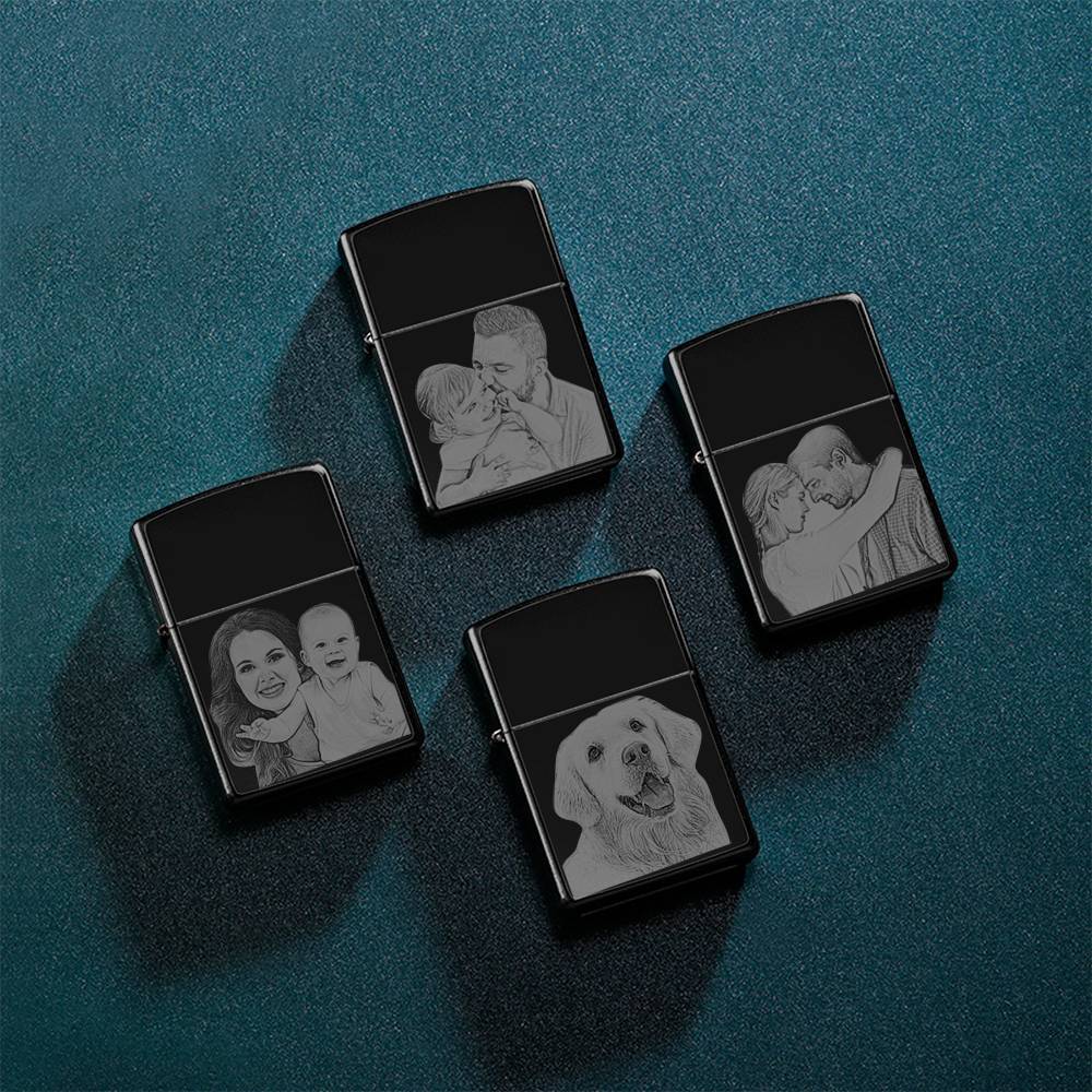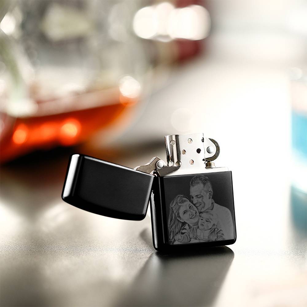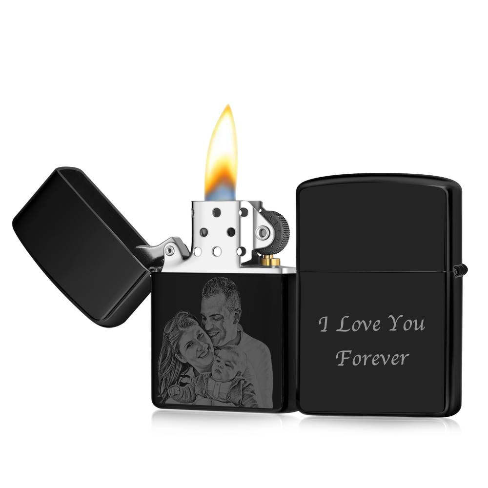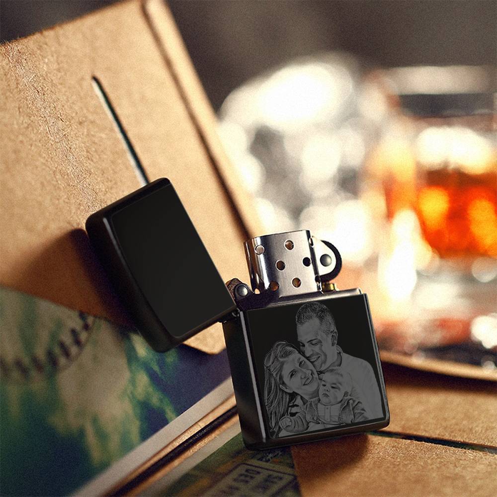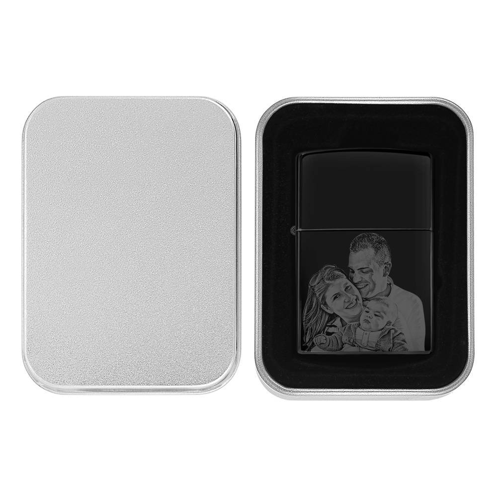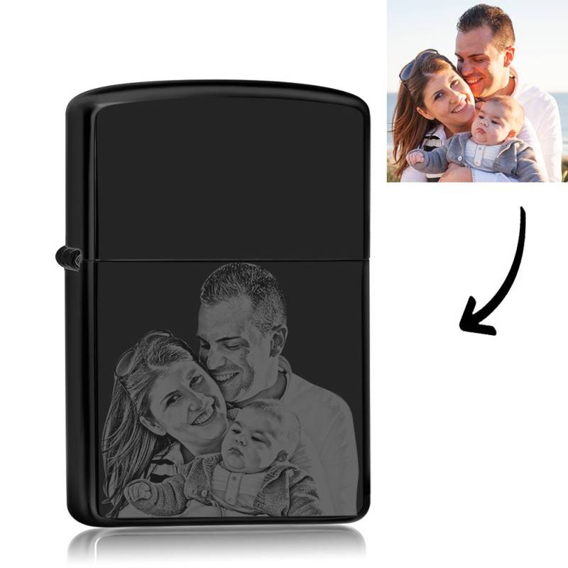 Photo Engraved Lighter Custom Gifts Happy Family - Black (No Kerosene Included)