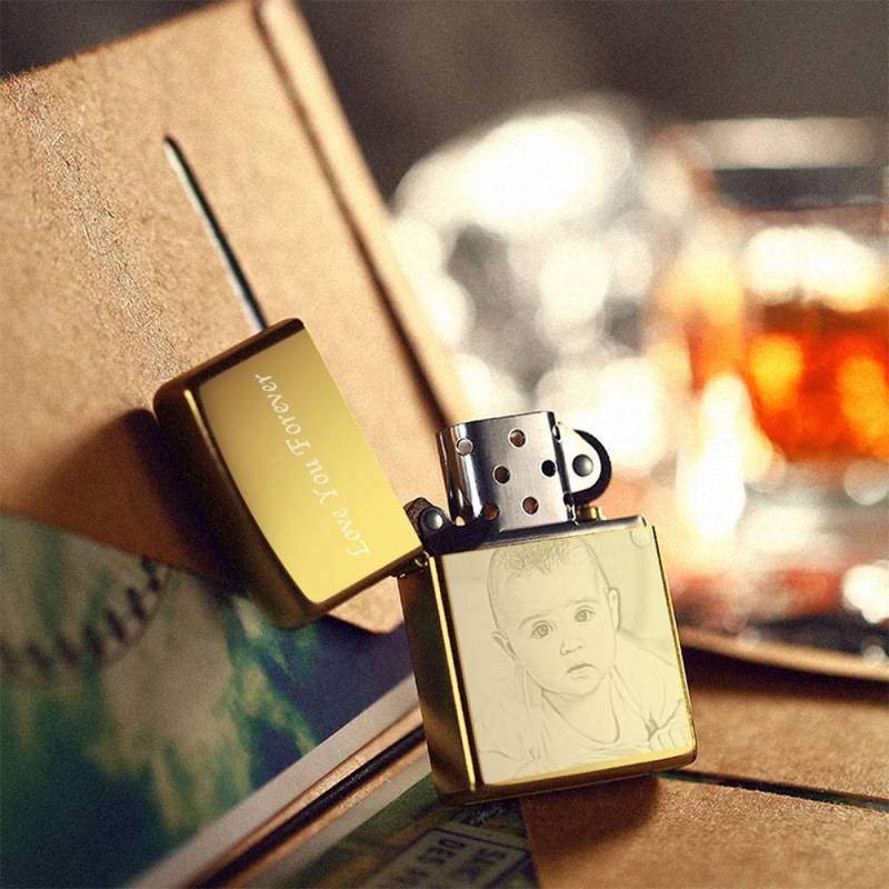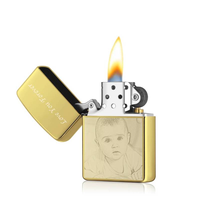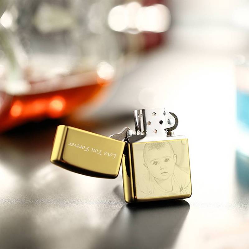 Photo Engraved Lighter Lovely Babies - Golden (No Kerosene Included)