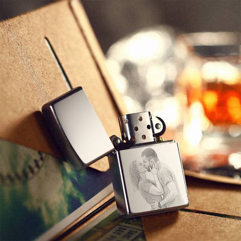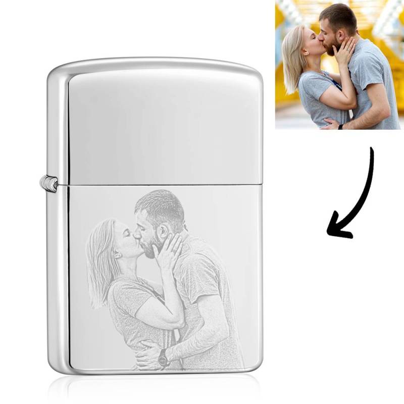 Photo Engraved Lighter Sweet Couple's Gift - Silver (No Kerosene Included)