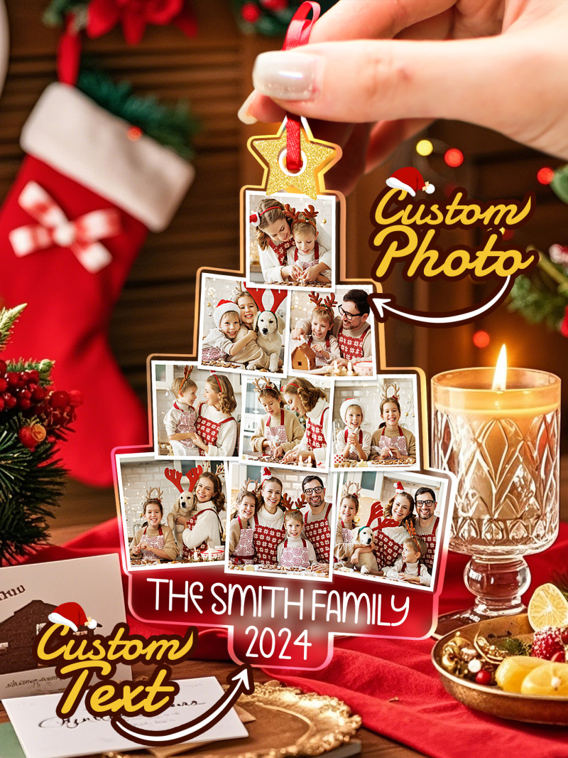 Photo Family Tree Christmas - Personalized Acrylic Photo Ornament, 1st Christmas Together, Personalized Family Christmas Ornament