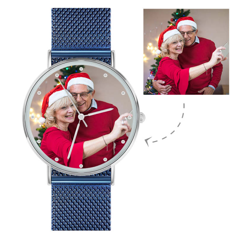 Photo Watch - Personalized Engraved Watch Blue Strap