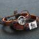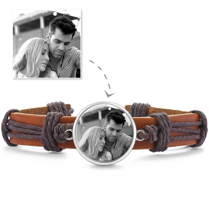 Photocopying Brown Leather Round-shaped Photo Bracelet Silver Plated
