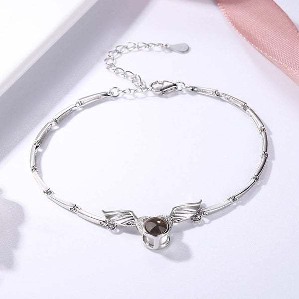 Projection Photo Projection Bracelet I Love You Bracelet in 100 Languages Silver Angle Wings