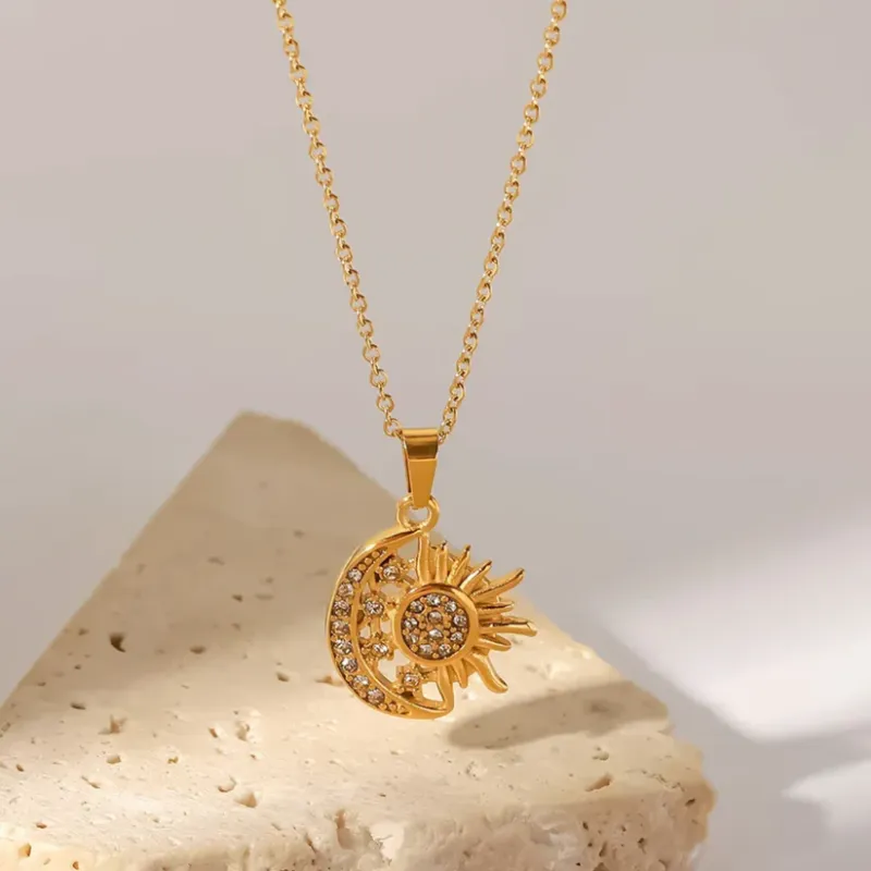 Radiant Sun & Moon Necklace – Sparkling Celestial Pendant with Shimmering Stars, Symbol of Eternal Balance and Cosmic Beauty