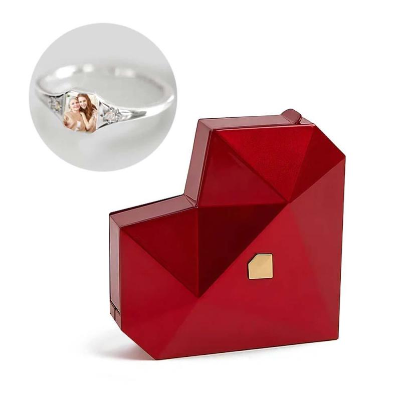 Ring Memorial Box Set Personalized Birthstone Photo Ring 2 Photo Colors Custom Jewelry Perfect Gift for Her Valentine's Day Gifts