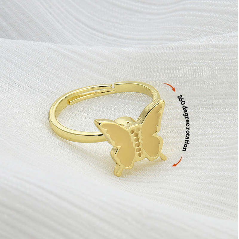 Anxiety Relief Decompression Butterfly Ring Daisy Opening Adjustable Ring Gift for Women