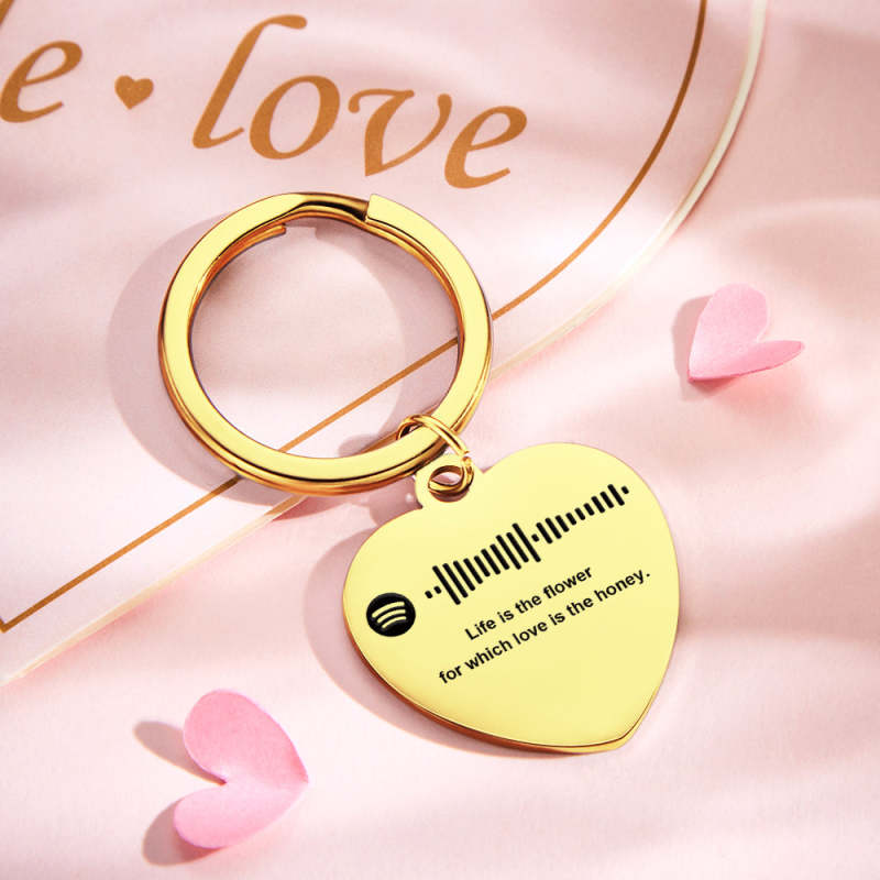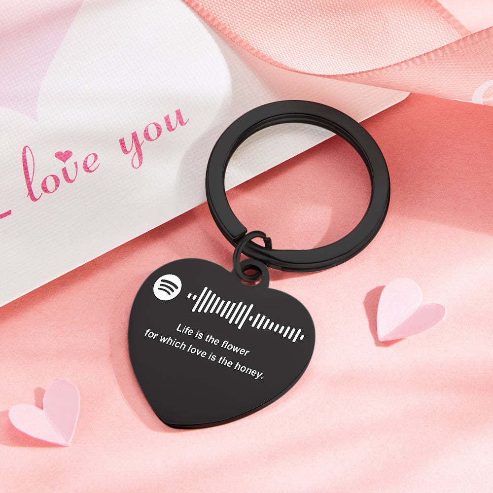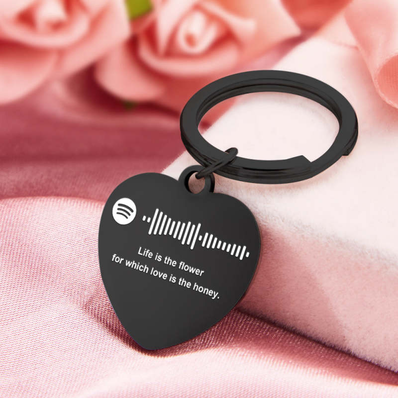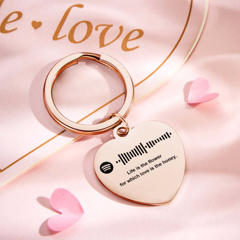 Scannable Music Code Custom Engraved Keychain Personalized Heart-shaped Music Song Key chains Valentine's Day Gifts