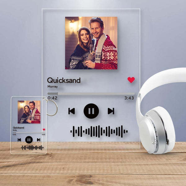 Scannable Music Code Plaque Keychain Music and Photo Acrylic, Song Keychain Anniversary Gift For Your Love 2.1in*3.4in (5.4*8.6cm)