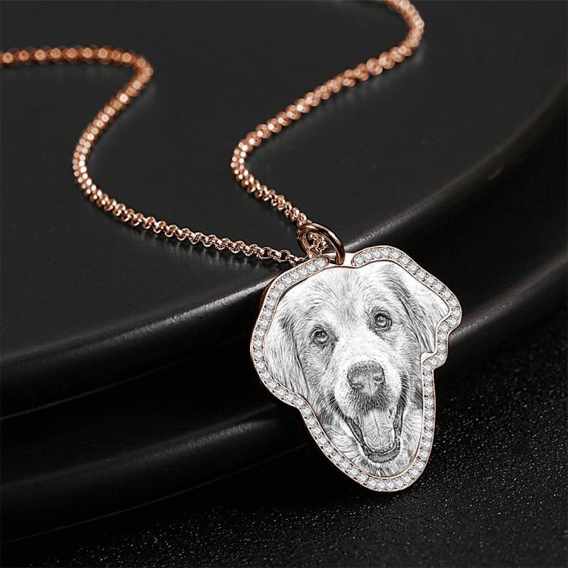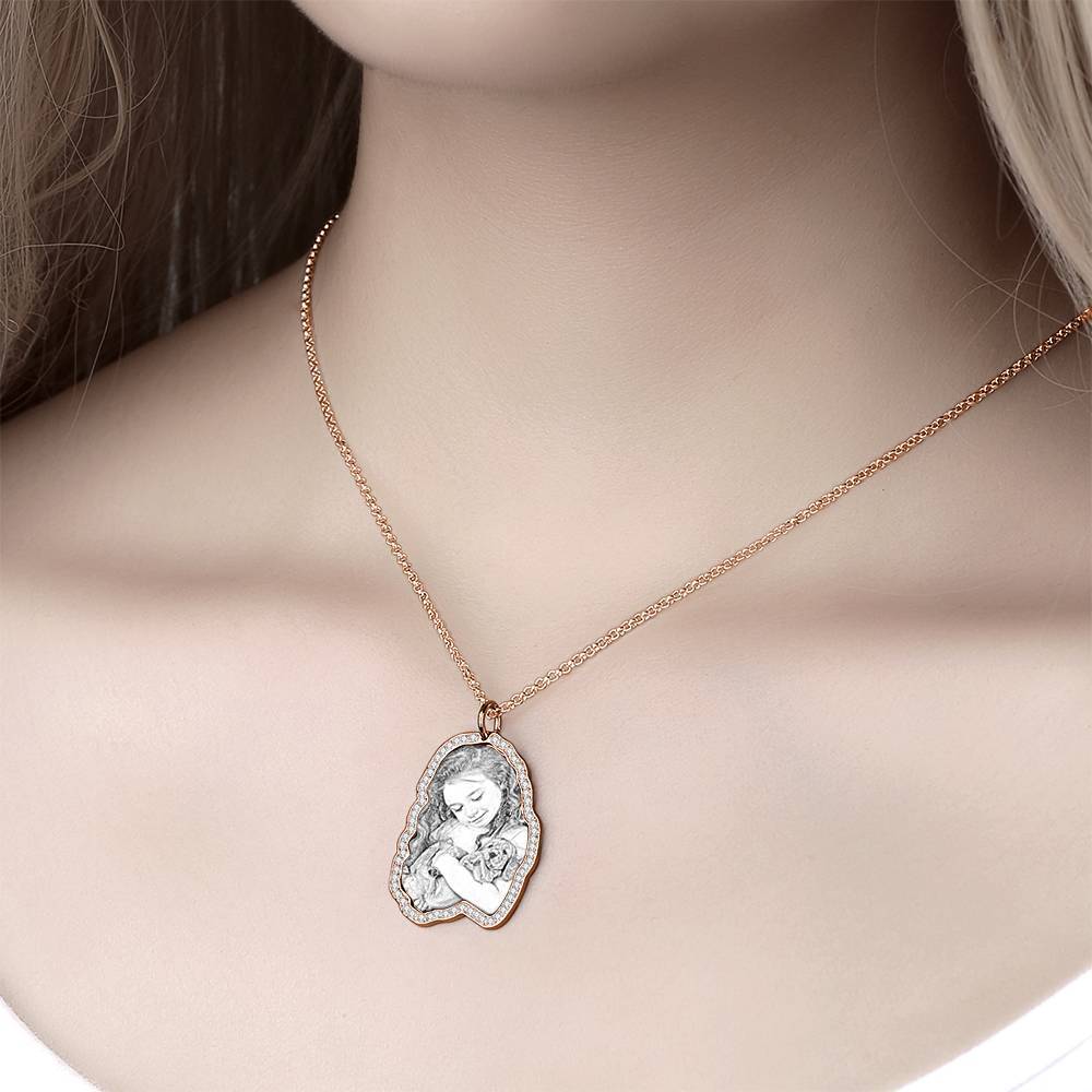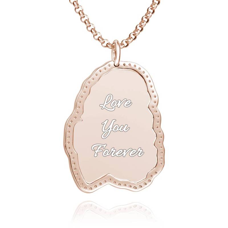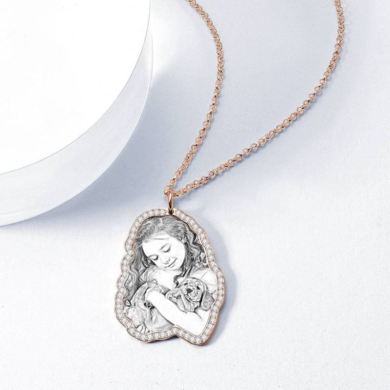 Sketch Photo Engraved Necklace with Rhinestone Crystal Rose Gold Plated