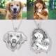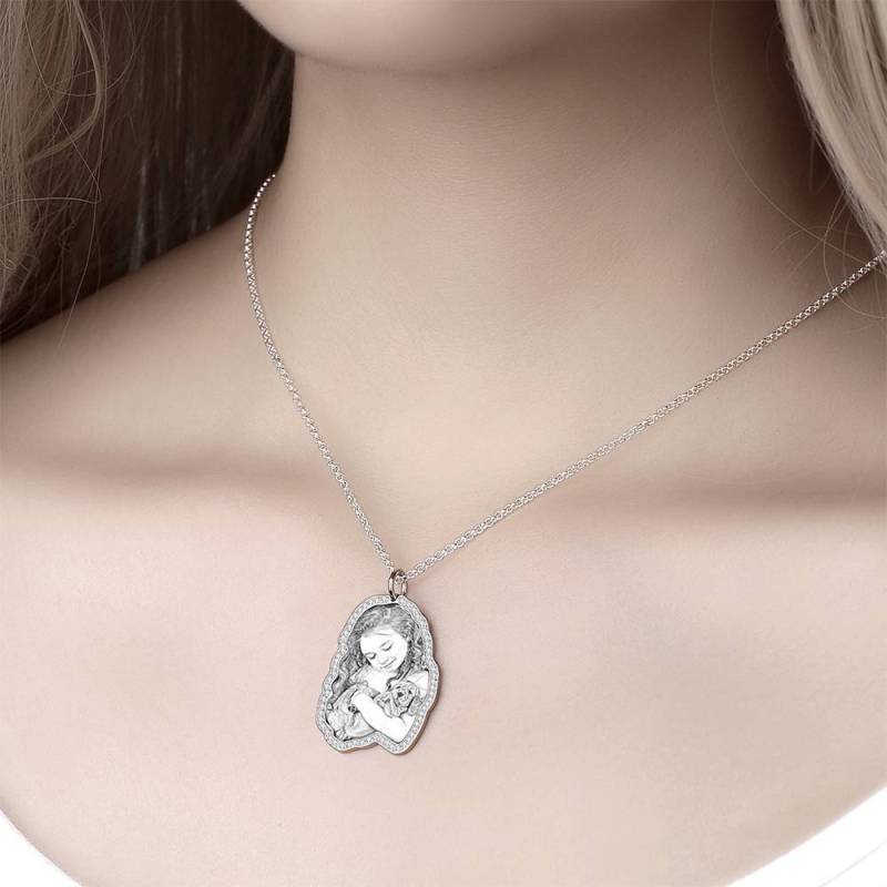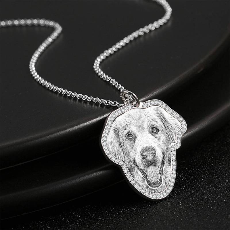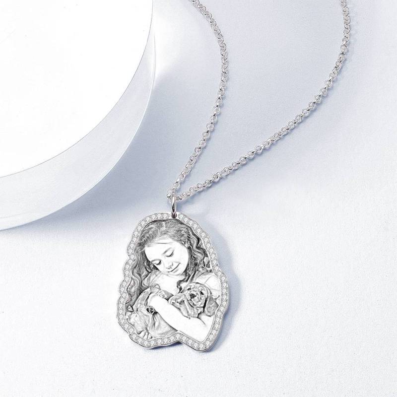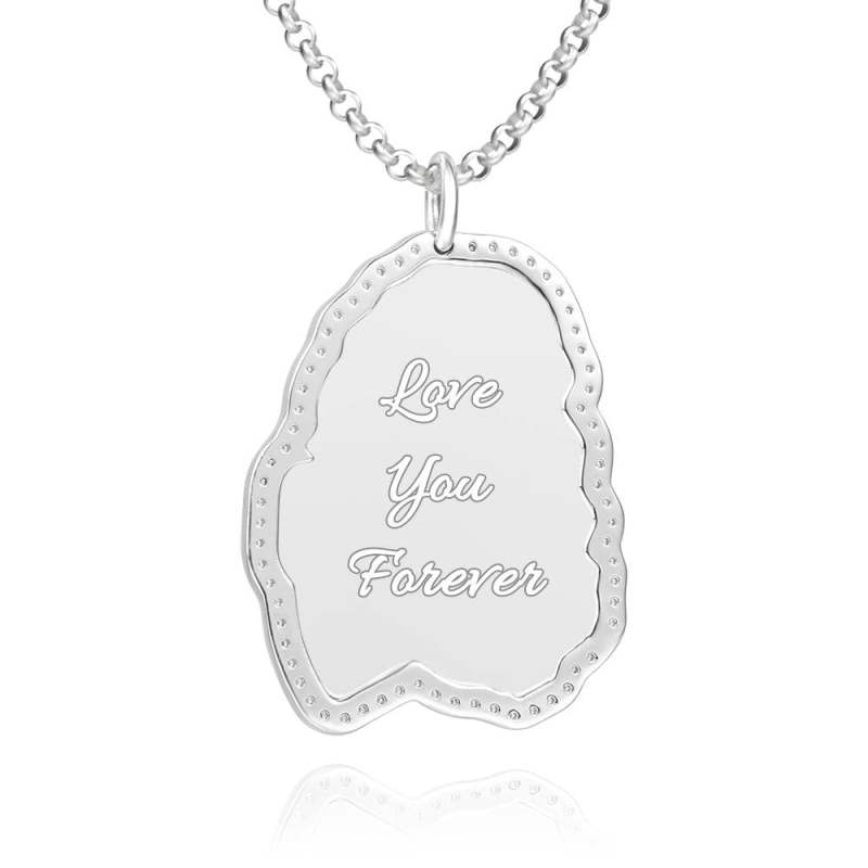 Sketch Photo Engraved Necklace with Rhinestone Crystal Silver Plated Silver
