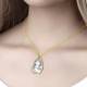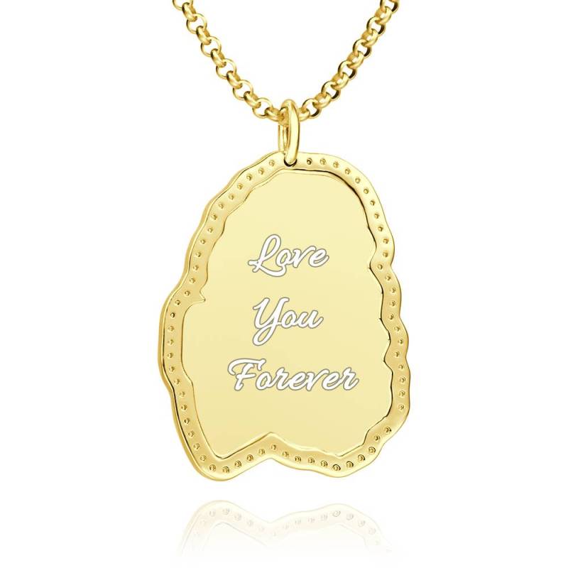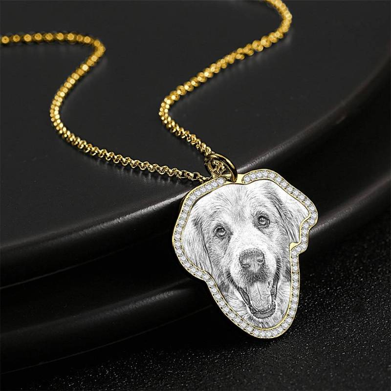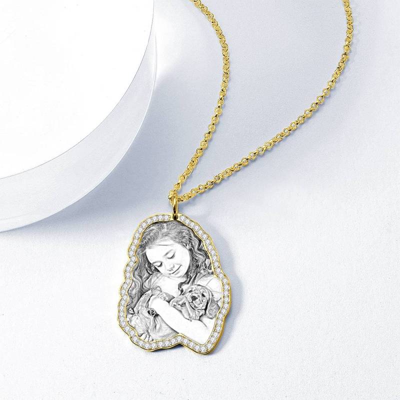 Sketch Photo Engraved Necklace with Rhinestone Crystale 14K Gold Plated
