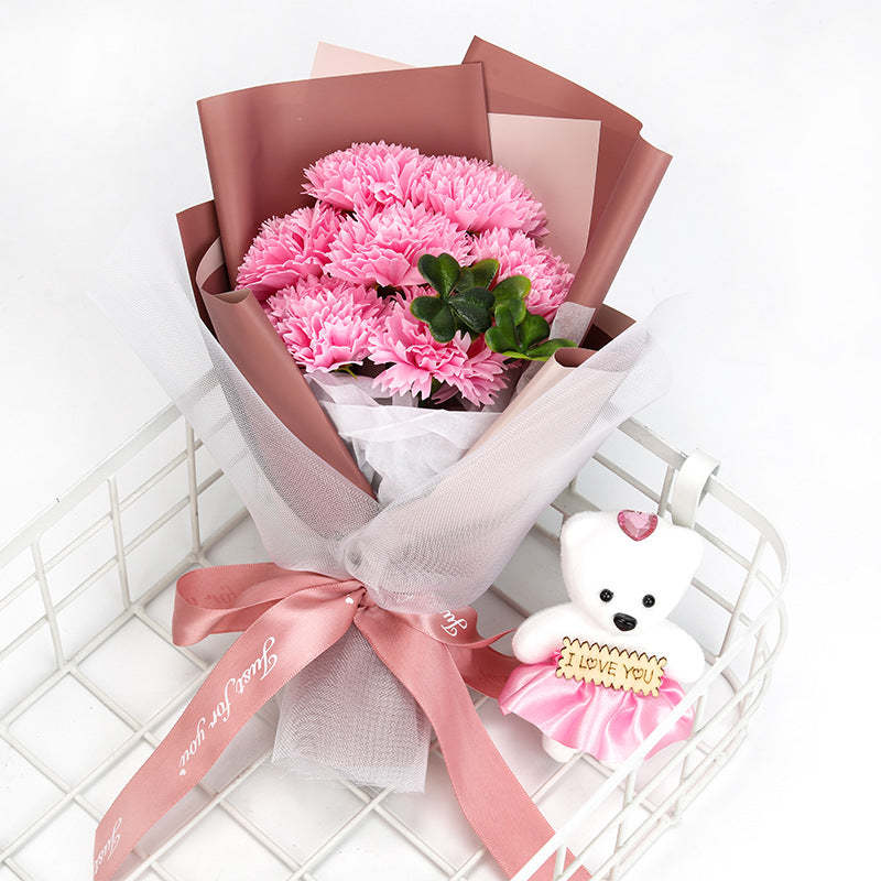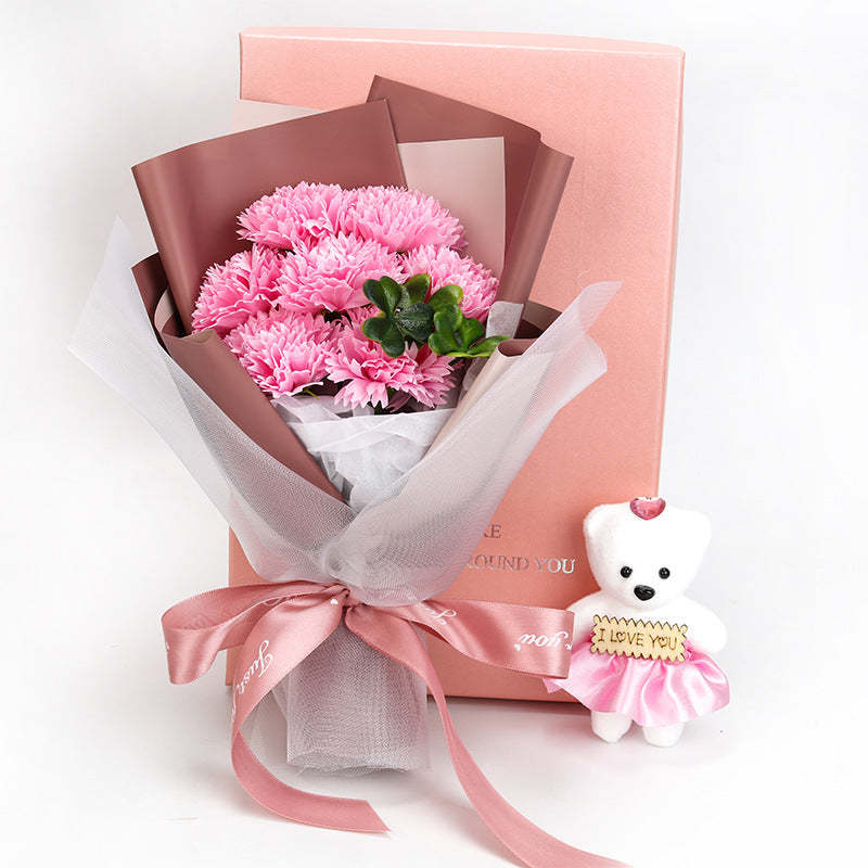 Soap Bouquet Box Floral Scented Romantic Gift Box with Mini Bear Toy for Women