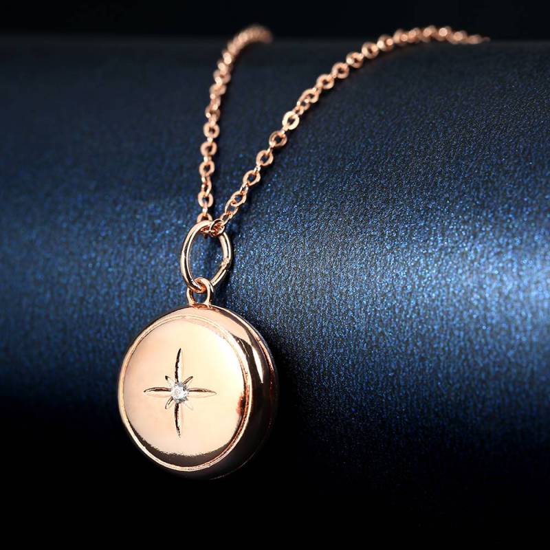 Star Printing Photo Locket Necklace Rose Gold Plated