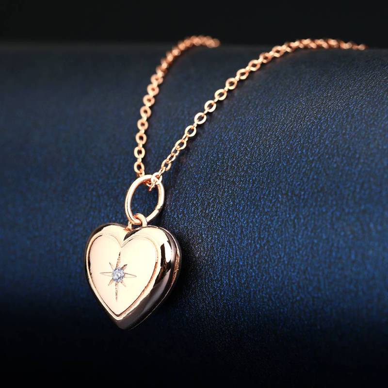 Star Printing Photo Locket Necklace Rose Gold Plated