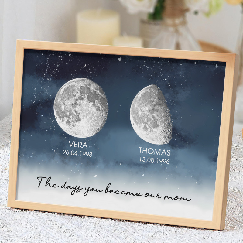 Starry Night The Day You Became Mom Birth Moon Phase Personalized Poster, A Heartfelt Gift for Mom's Birthday, Mother's Day, or Just Because