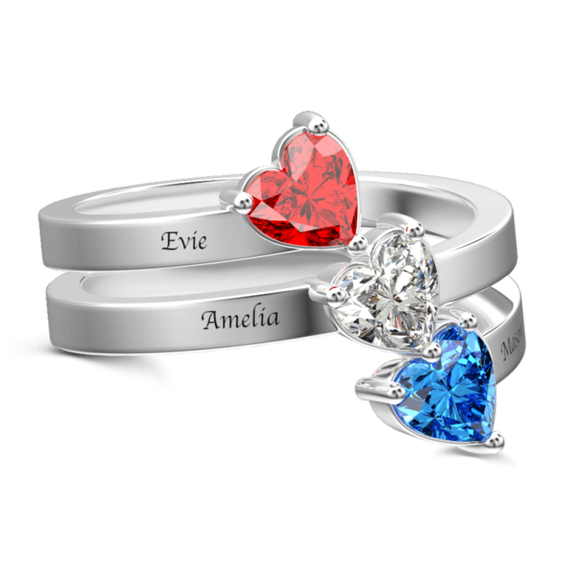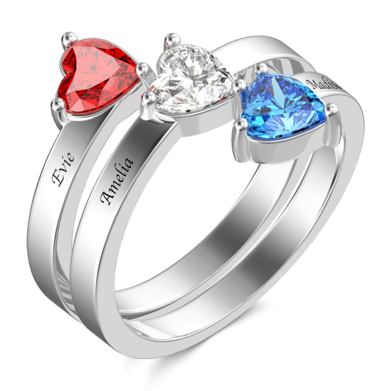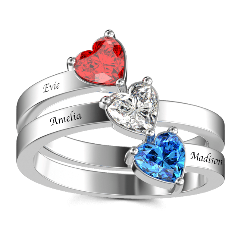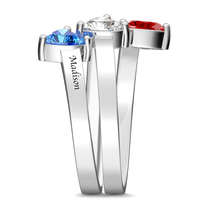Three Heart Birthstone Promise Ring with Engraving Silver