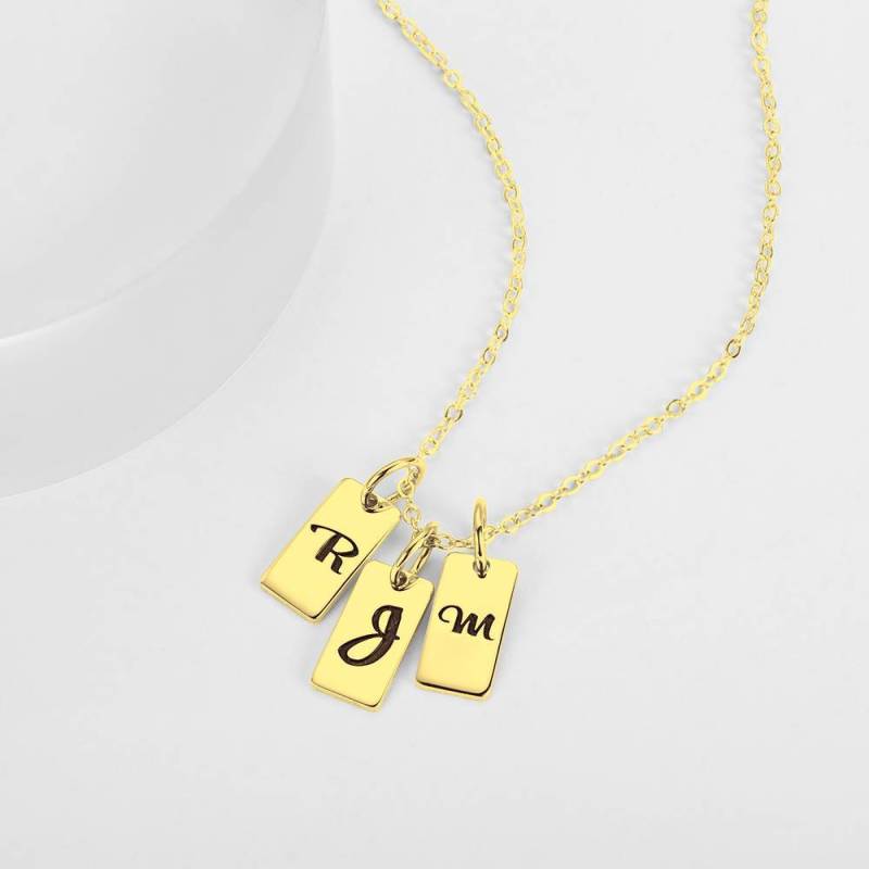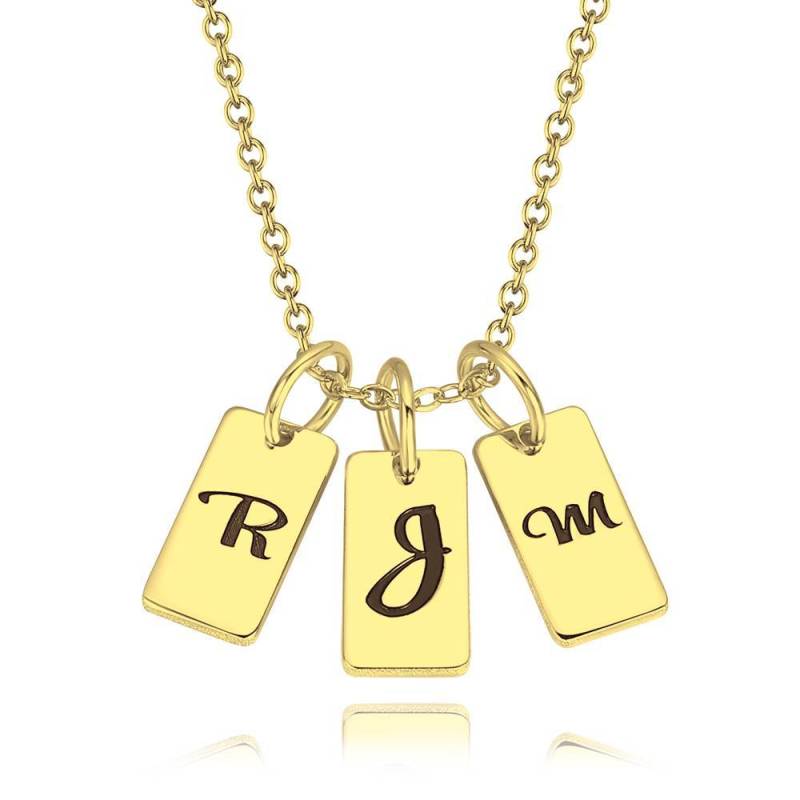Three Initial Letters Engraved Necklace 14K Gold Plated