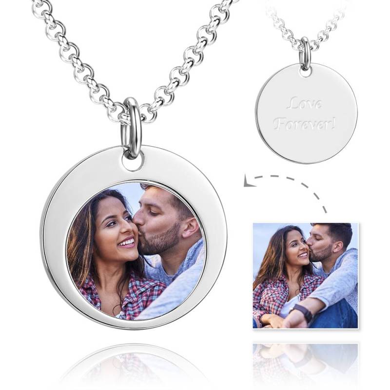 Unisex Round Photo Engraved Tag Necklace with Engraving Stainless Steel