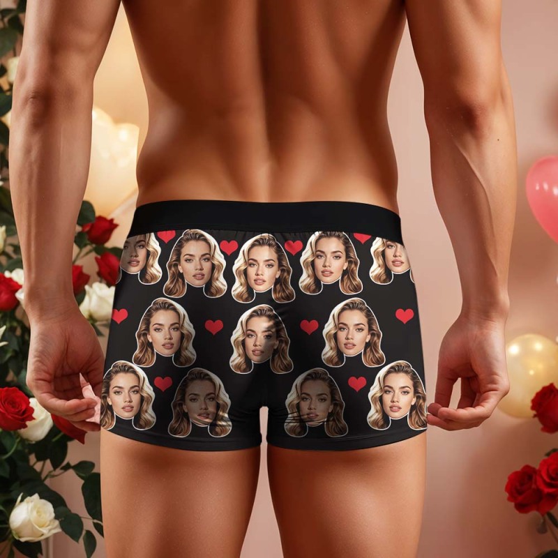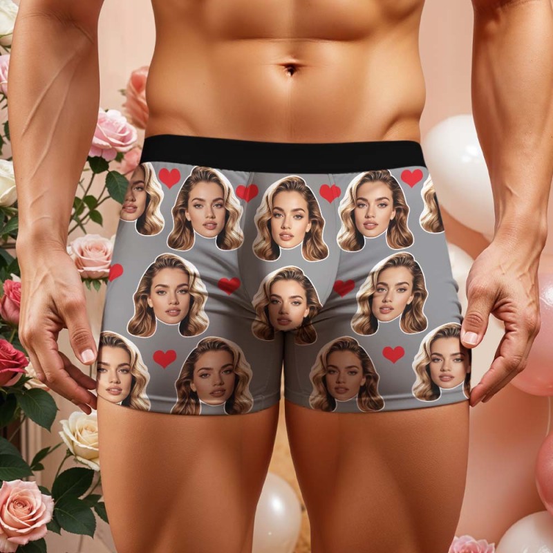 Gift For Men Custom Big Face Heart Boxer Shorts