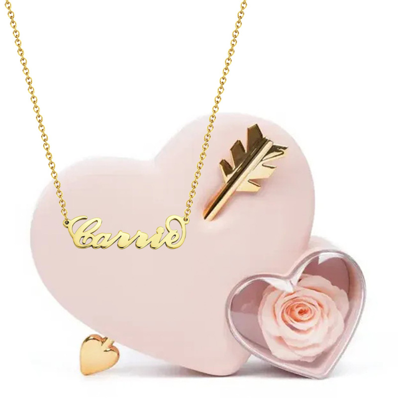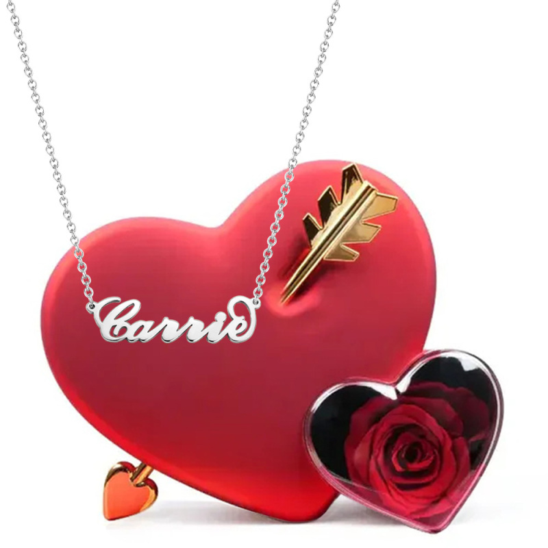 Valentine's Gifts Custom Name Necklace with Love Rose Eternal Gift Box
