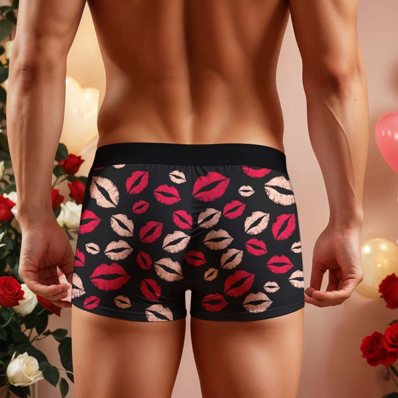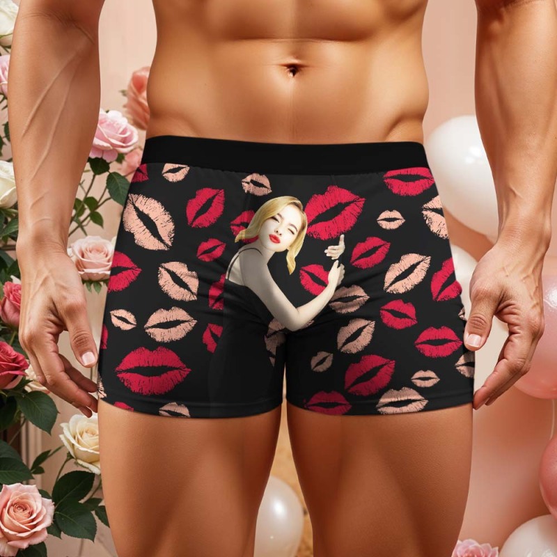 Valentine's Gift Custom Men's Face On Body Boxer Shorts Personalized Red Lips Boxer Briefs