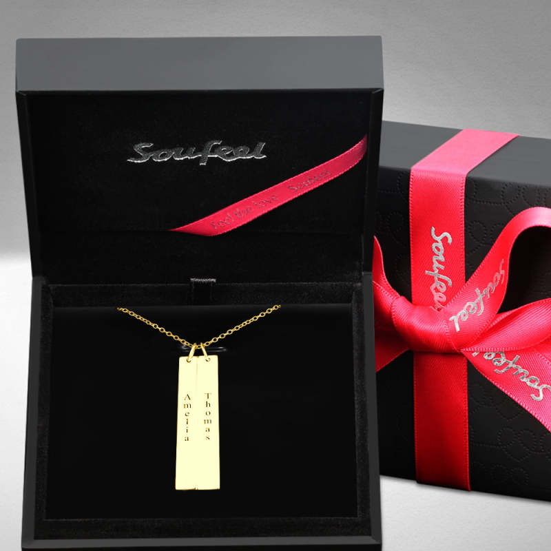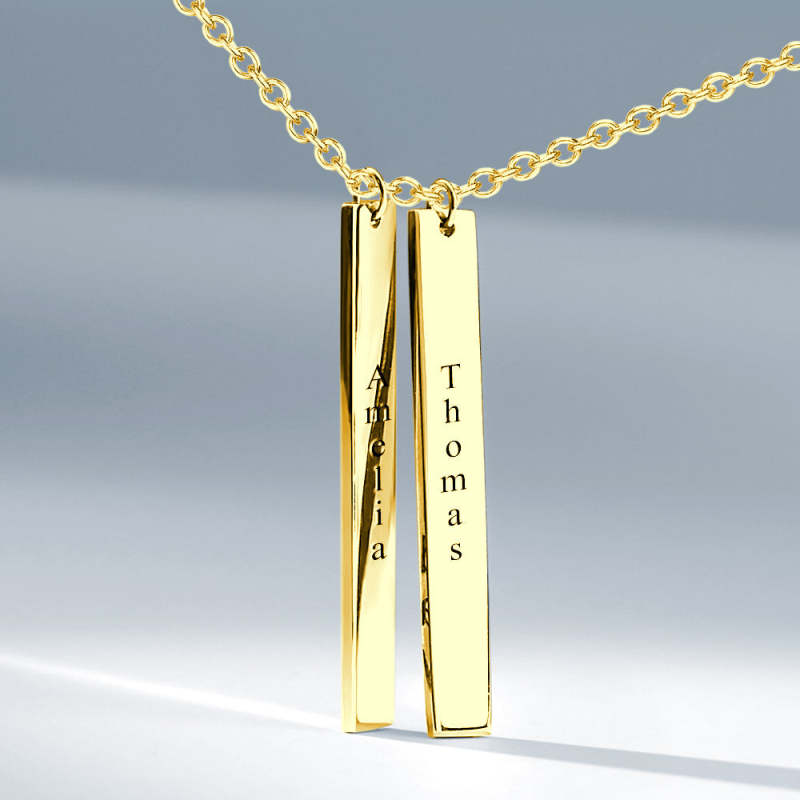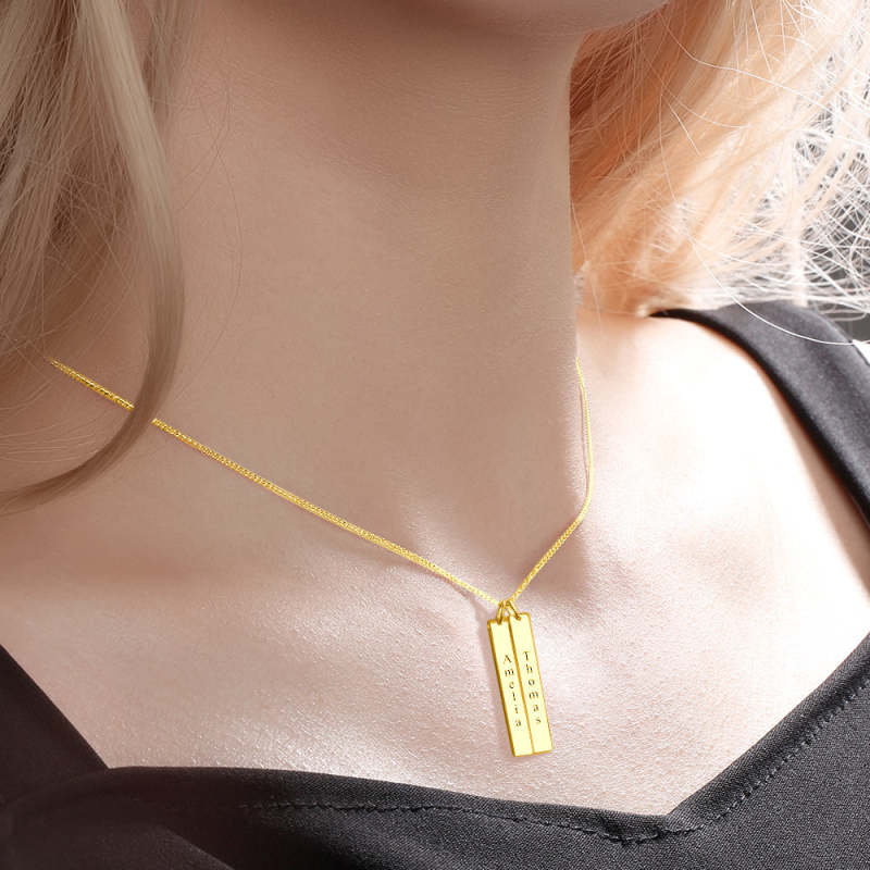 Vertical Two Bar Necklace With Engraving 14k Gold Plated