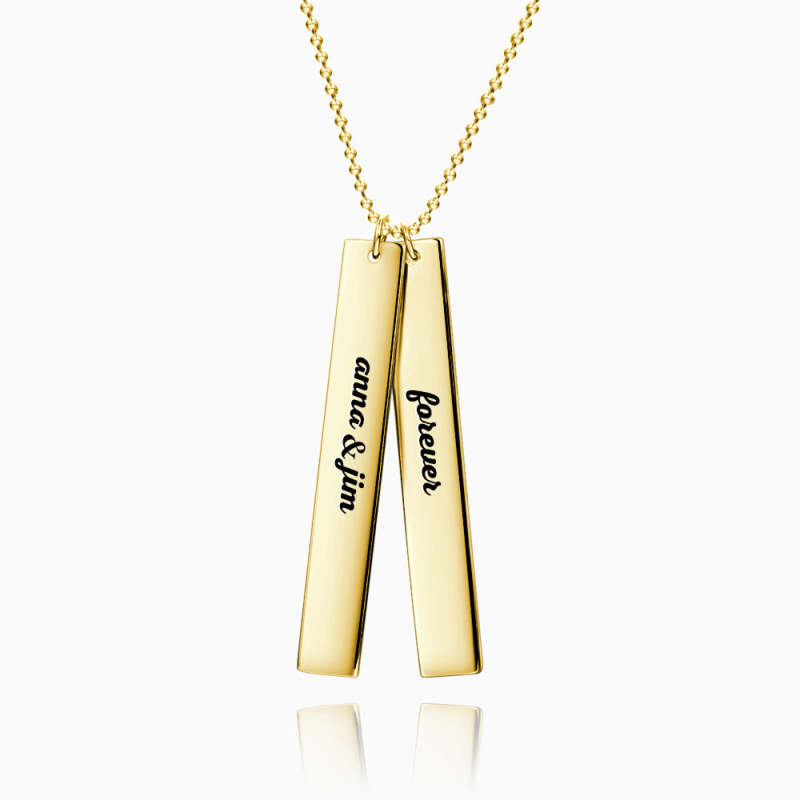 Vertical Two Bar Necklace With Engraving 14k Gold Plated Silver