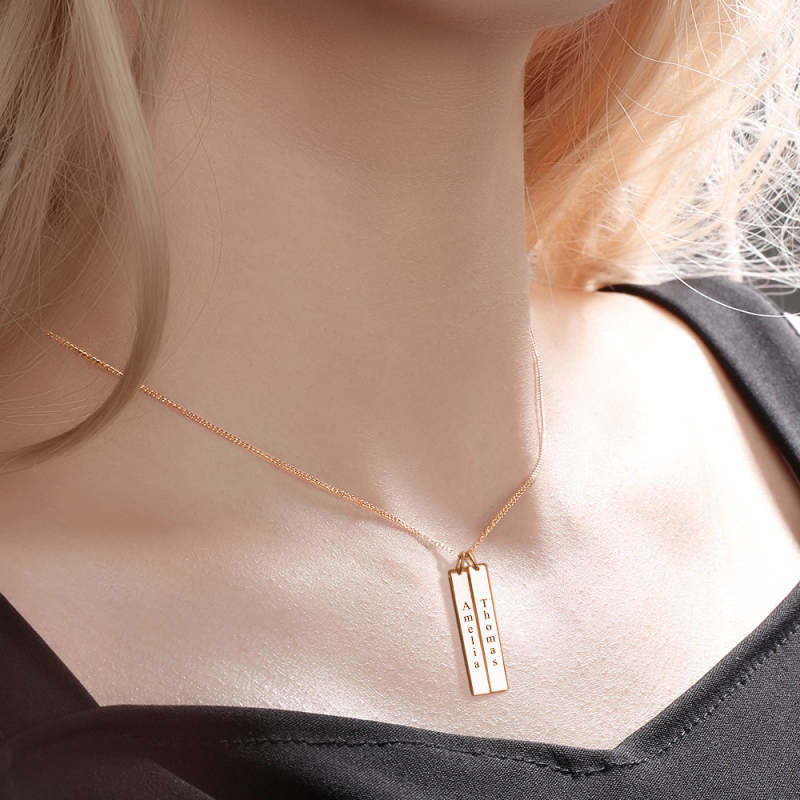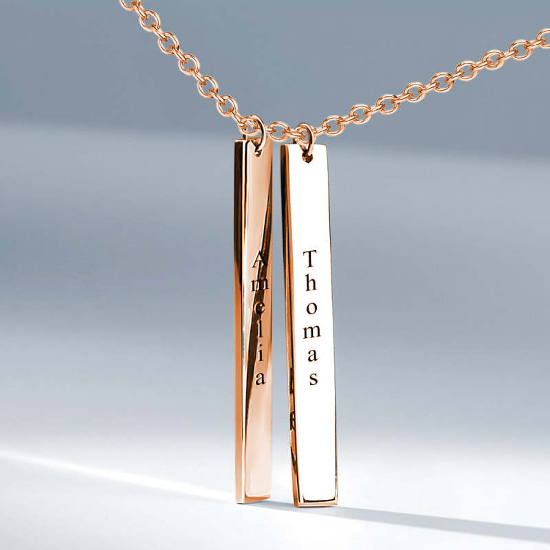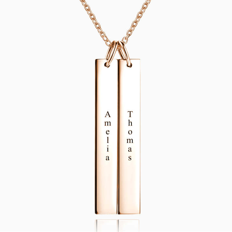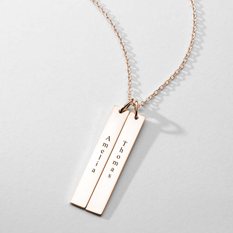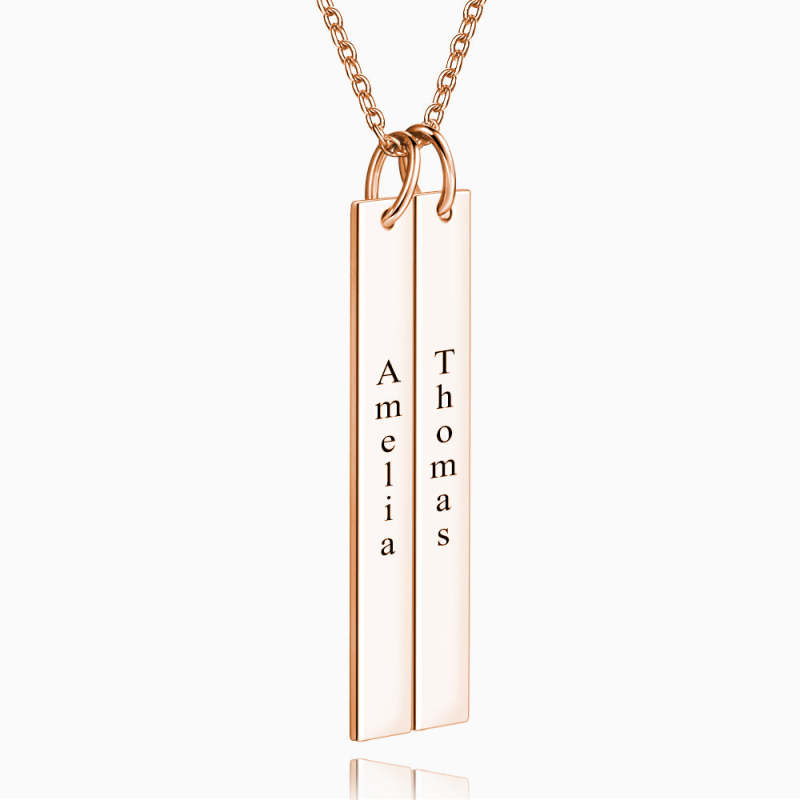 Vertical Two Bar Necklace With Engraving Rose Gold Plated