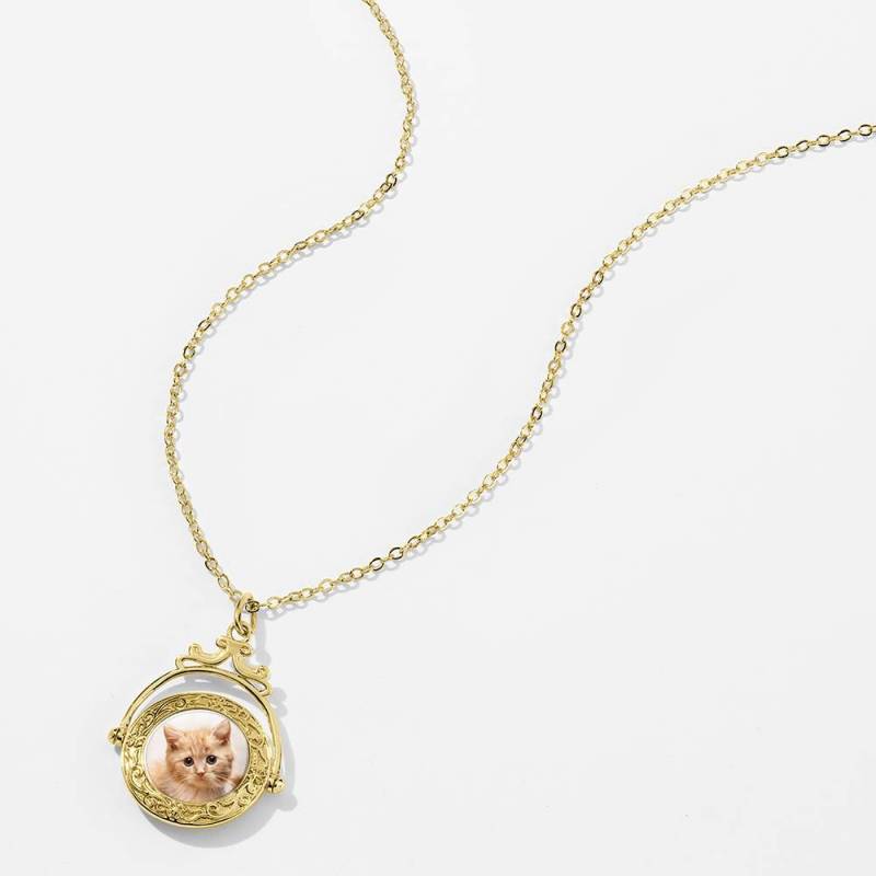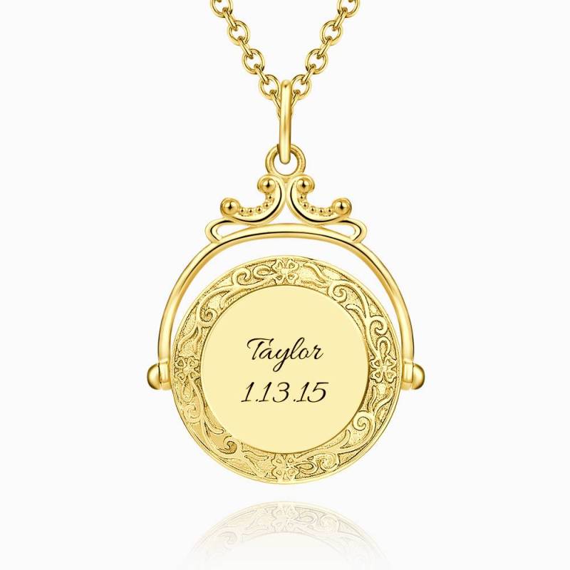 Vintage Embossed Mirror Custom Photo Necklace 14k Gold Plated