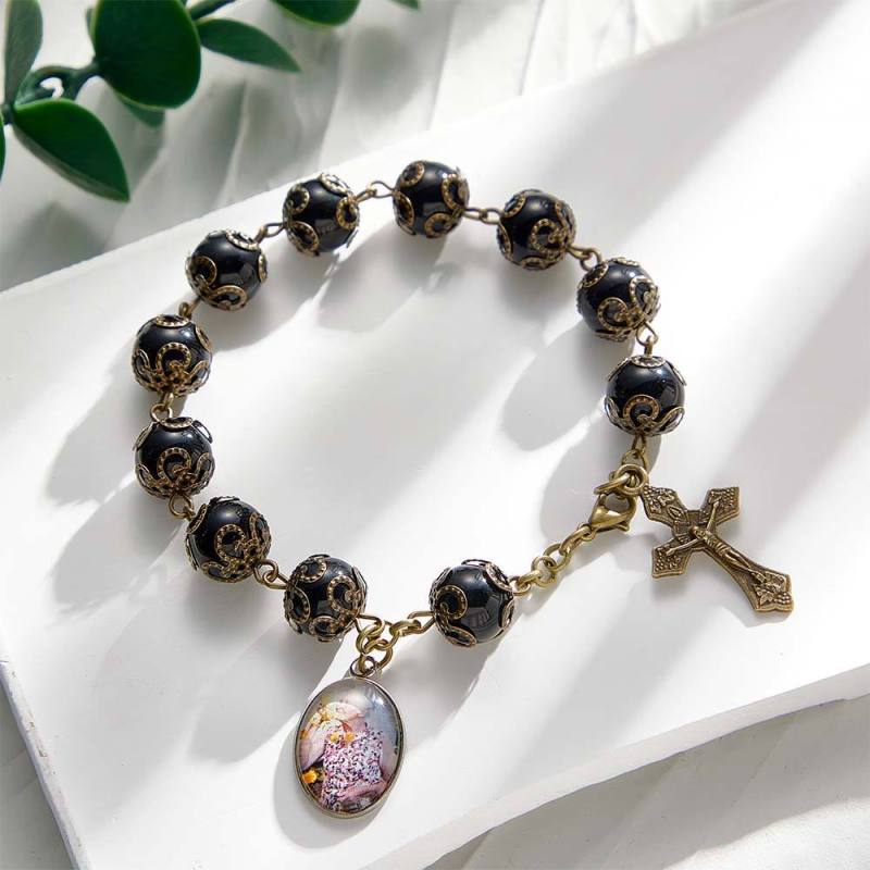 Vintage Rosary Beads Cross Bracelet Custom Photo Memorial Gifts Prayer Personalized Sentimental Gifts for Her