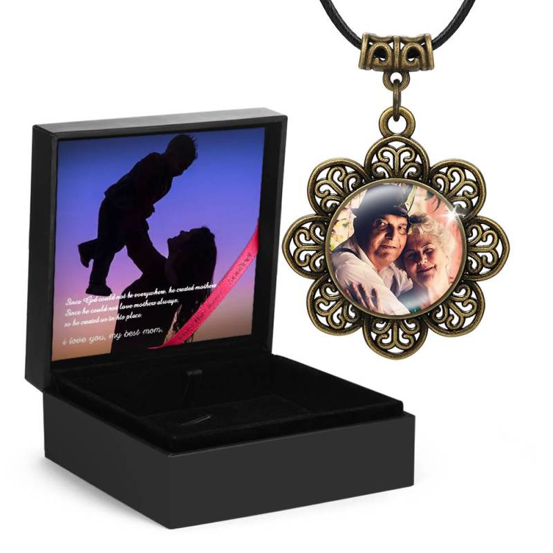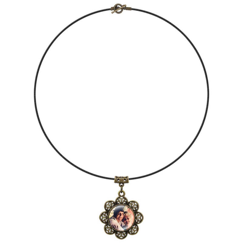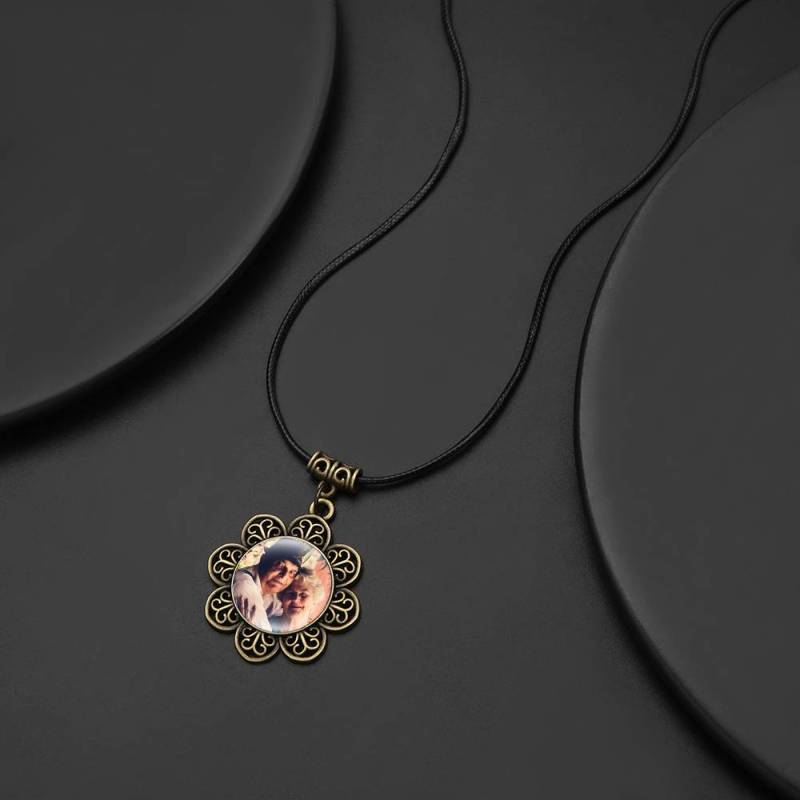 Vintage Round Photo Necklace with Floral Border