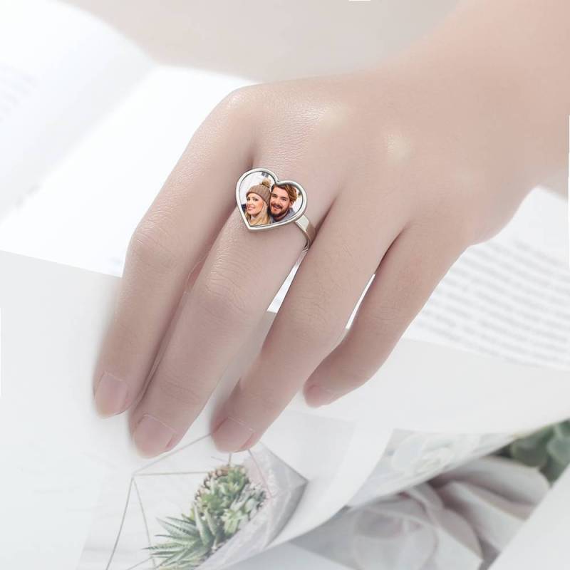 Women's Heart Photo Ring With Engraving Silver For Her