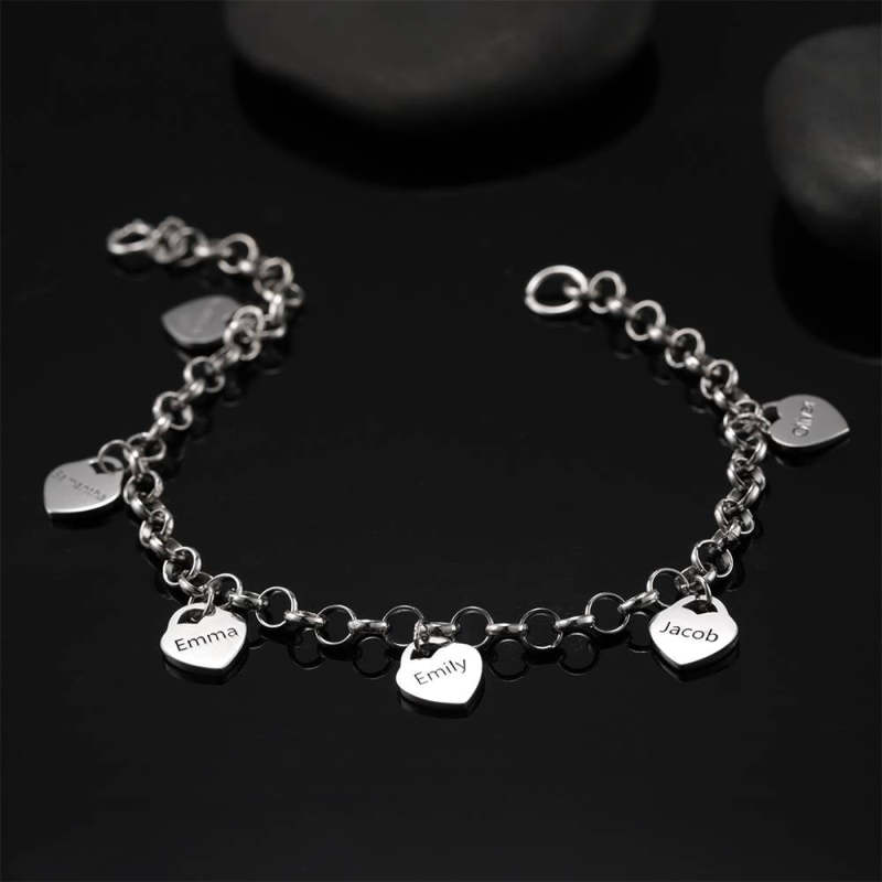 Women's Heart Shape Engraved Tag Bracelet With Engraving Copper in Silver