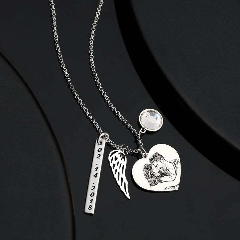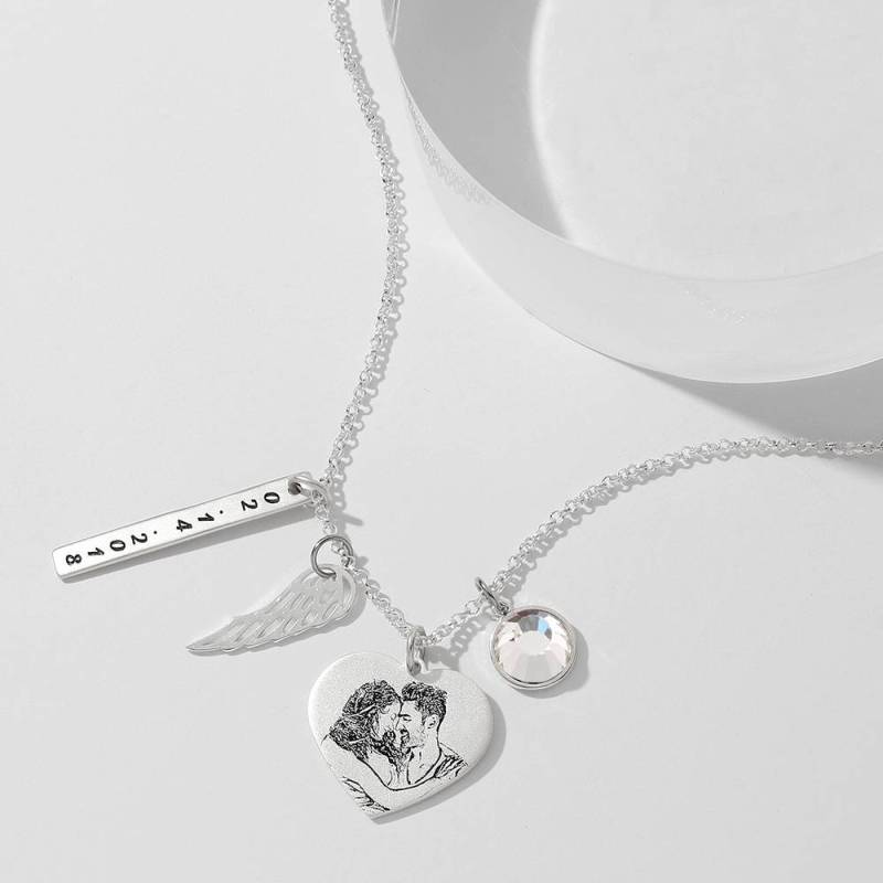 Women's Photo Engraved Tag Necklace With Engraving Silver