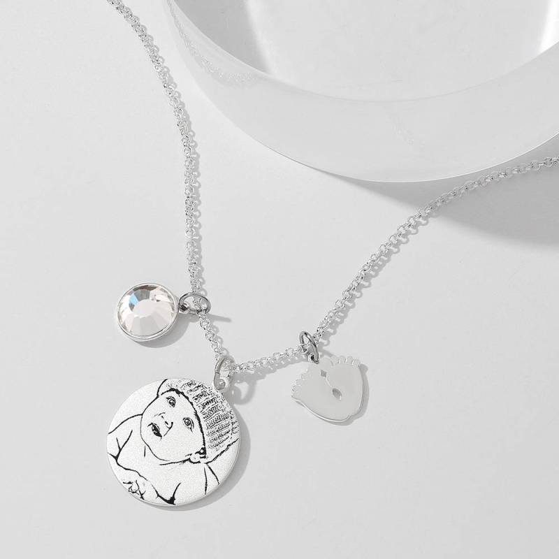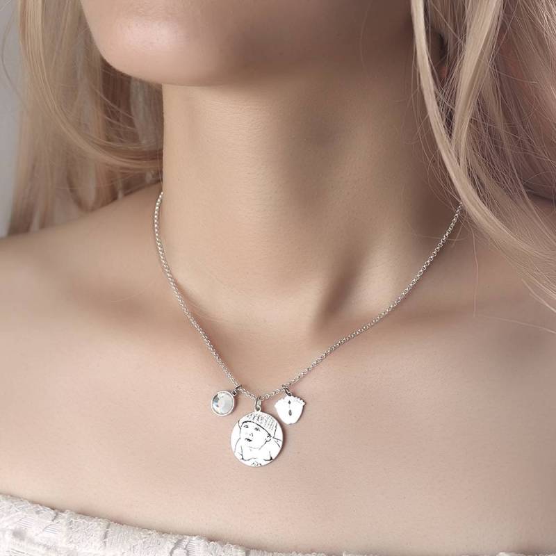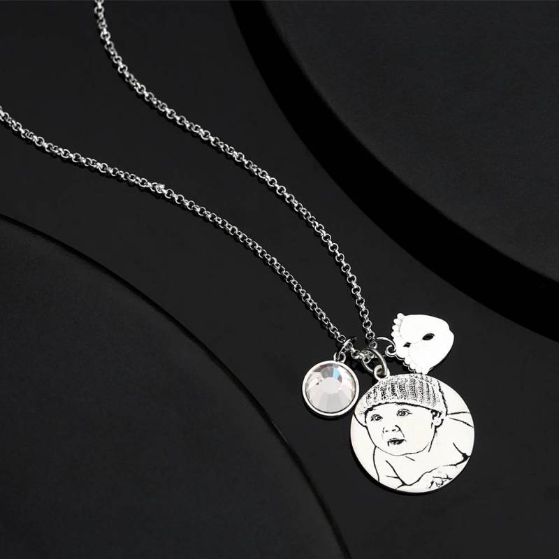 Women's Photo Engraved Tag Necklace With Engraving Silver