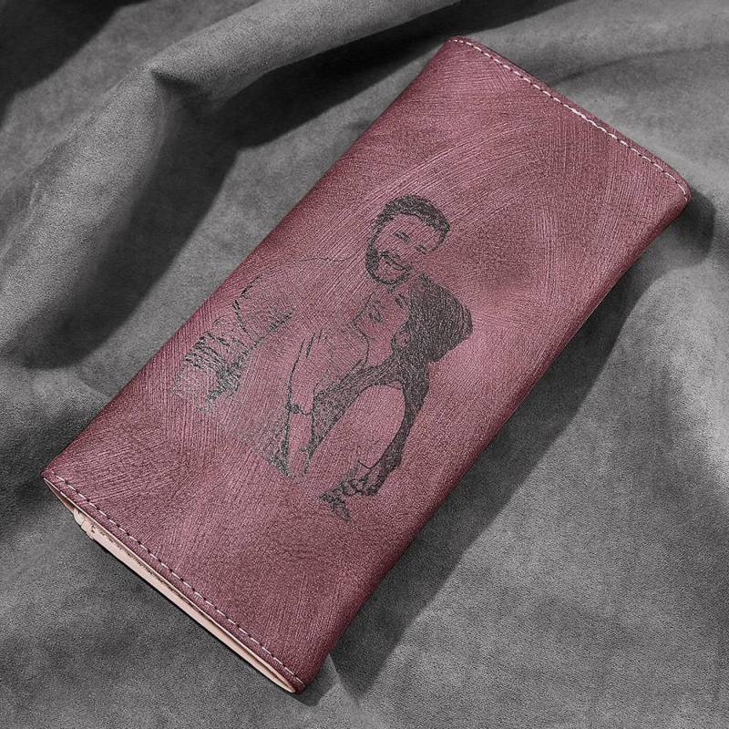 Women's Photo Engraved Trifold Photo Wallet - Red Leather