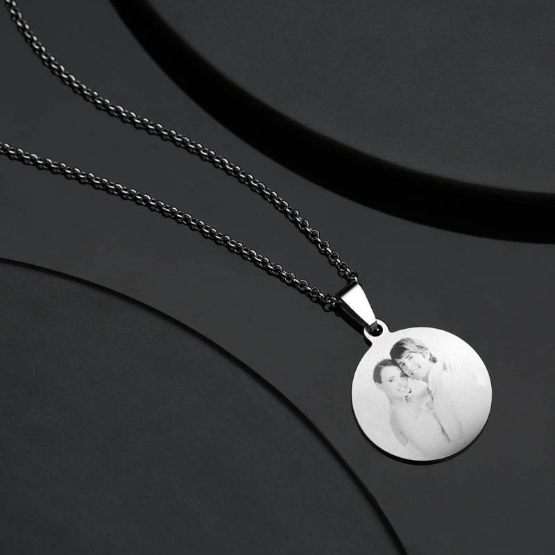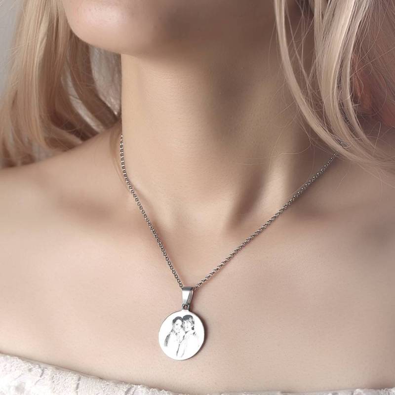 Women's Round Photo Engraved Necklace Stainless Steel
